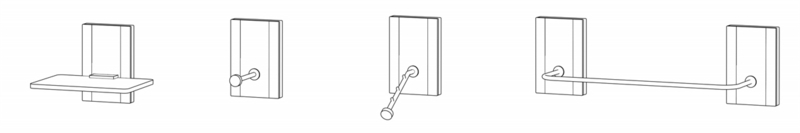 左からトレー、フック、ハンガーフック、ハンガーポール