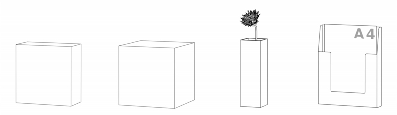 左からボックスM、ボックスL、フラワーベース、パンフレットケース